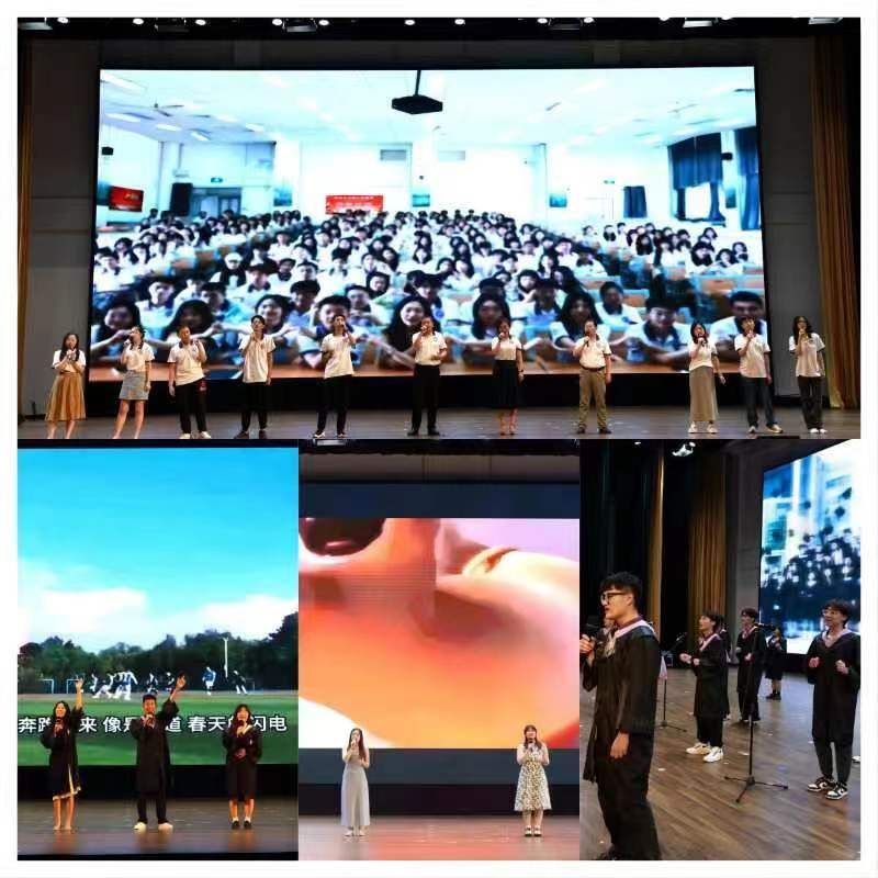 晚会第三篇章的主题是“前程似锦”:“放心去飞,勇敢地去追,追一切我们未完成的梦……”vwin德赢ac米兰官方网的老师们饱含深情为毕业学子倾情献唱《放心去飞》,鼓励同学们不怕困难、不惧挑战,为了梦想勇毅前行。愿你阅尽千帆,归来仍是少年,一曲《你曾是少年》祝愿毕业生走出校园,仍是当初那个英姿勃发、拼搏向上的热血少年;歌曲《你从未离去》让即将毕业的同学不再迷茫,背上思念的行囊走向远方;念一段过往,守一颗初心,视频中大四同学们回忆过往,许下期望,一帧帧画面流露出同学们对校园生活的怀念;最后,晚会在歌曲《再见》中圆满落幕。
