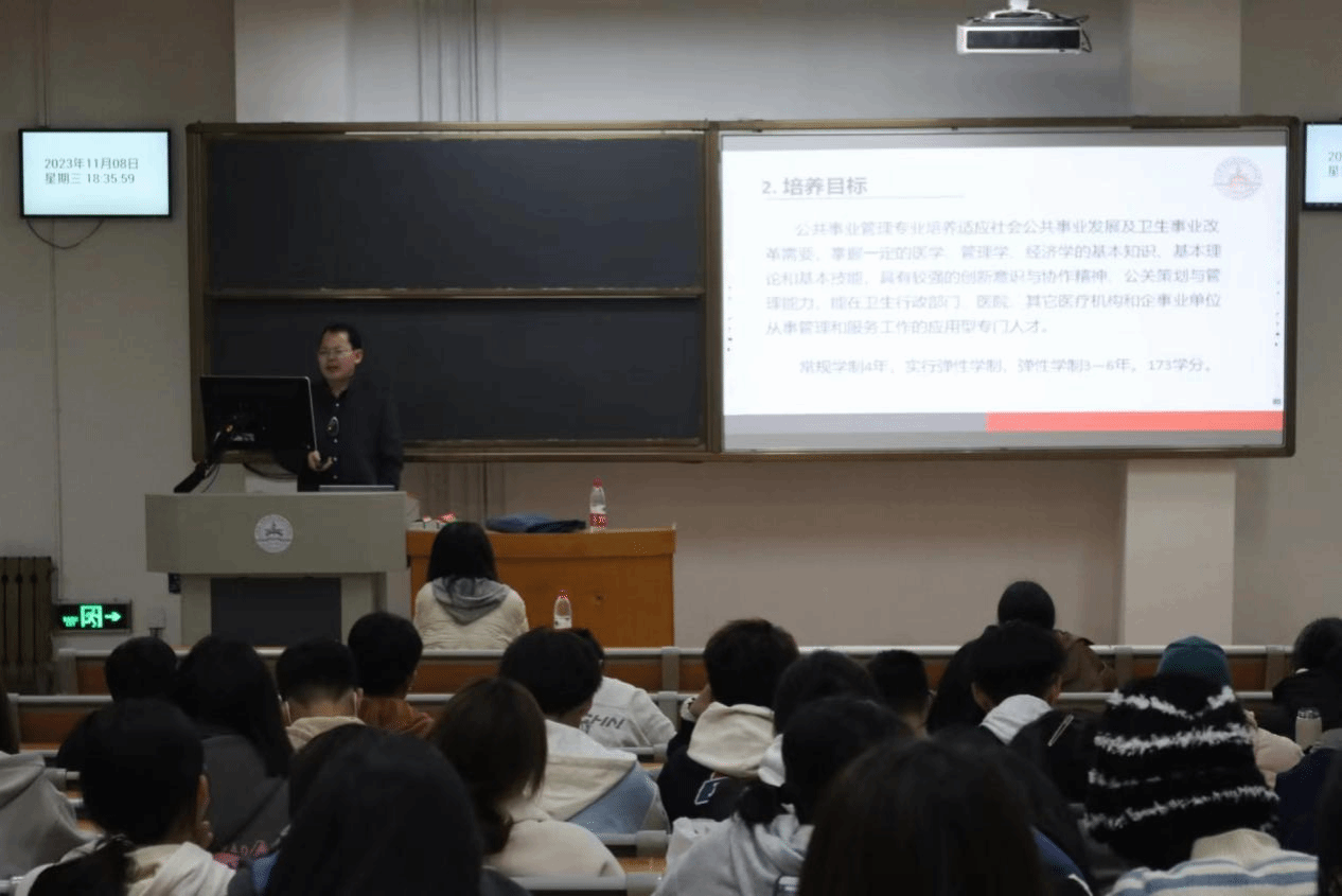 公共事业管理系主任袁飞老师在宣讲中指出,德赢官网公共事业管理专业以新文科、新医科为指导理念,培养新时期“医管融通、懂医学、会管理”的专业人才。他结合往届优秀校友为实例,展示公共事业管理专业多元化的就业方向和较高的考研率。丰富的教学经验、优质的师资队伍不仅能为同学们提供专业的学科指导和发展规划,也能对同学们未来考研就业方面提供重要指导。同时他希望同学们尽早明确努力的方向,做好未来职业的发展规划,朝自己设定的目标努力奋斗。