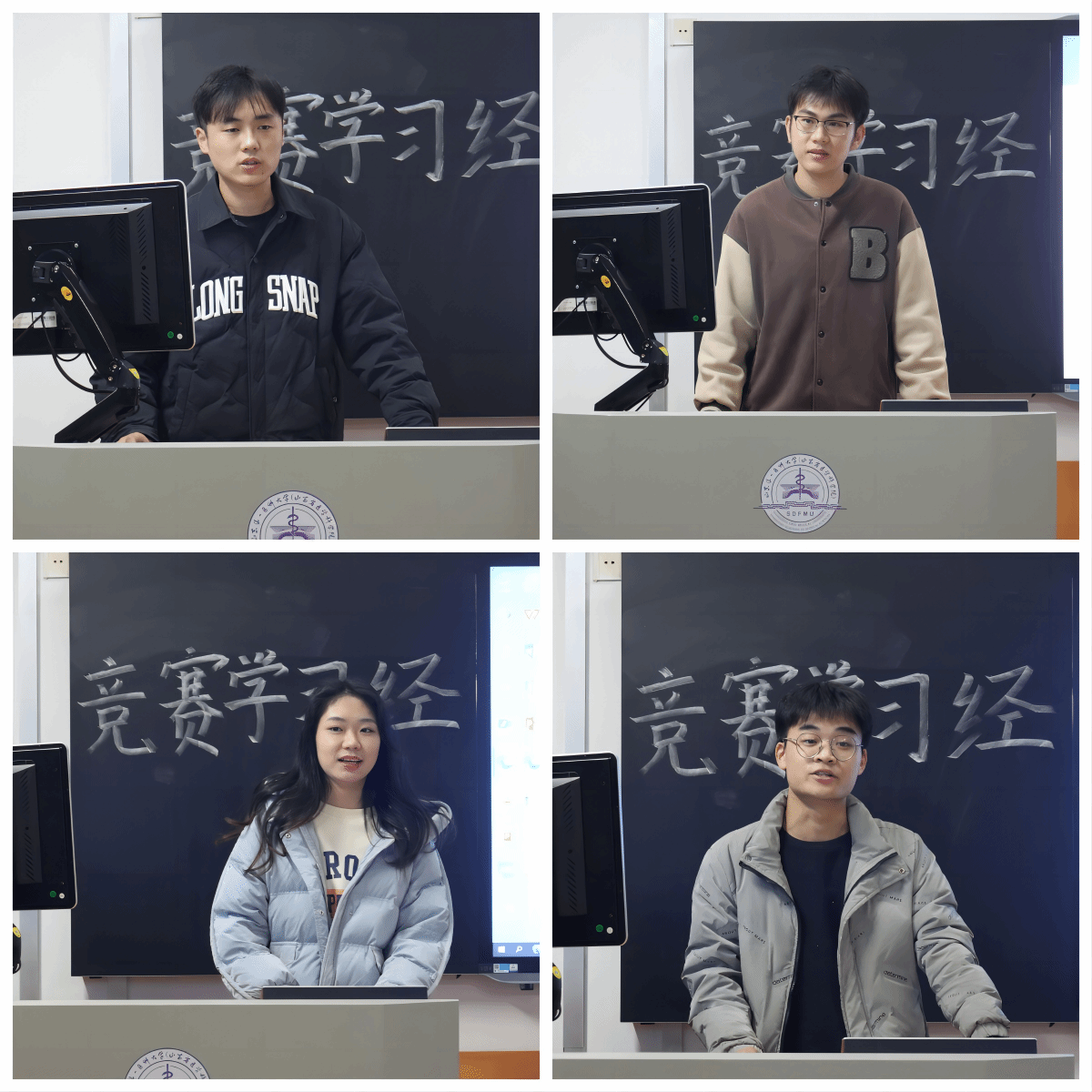 会上,胡冰涛、刘琳杰、于雪莹、张聪就自己的比赛经历向大家分享了比赛经验,他们重点围绕备赛要求、竞赛内容、比赛策略等方面,提醒同学们要制定备赛计划,在竞赛中保持冷静,从容应对竞赛中的各项挑战,学会从失败中吸取教训,不断总结经验。同时,他们建议同学们积极参加各类学科竞赛,努力夯实专业知识、提高专业技能,让自己的简历更加出彩,为日后求职做足准备。随后,同学们还就自己的疑惑进行了提问,学长学姐们耐心解答,进一步拓展了同学们对赛事的了解,在轻松融洽的交谈中也活跃了现场氛围。