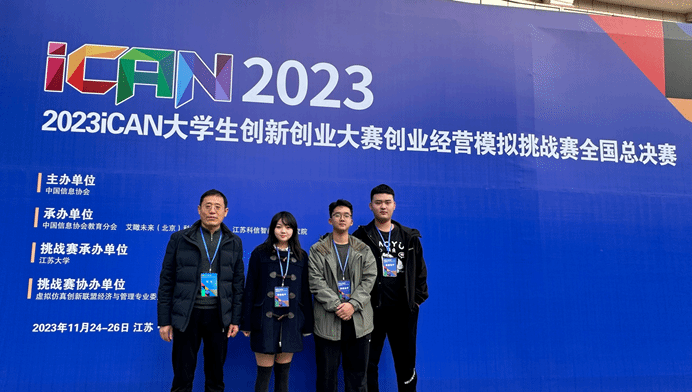 11月24日至26日,由中国信息协会主办的iCAN大学生创新创业大赛数字化创业经营模拟挑战赛全国总决赛在江苏大学举办。在本届大赛中,来自vwin德赢ac米兰官方网李嘉艺、董致颉、张欣琪(指导教师:崔行武、杨苗苗)获得二等奖,杨丽霞、蔡东良、高培焱(指导教师:高娟、任纬兵)获得三等奖。