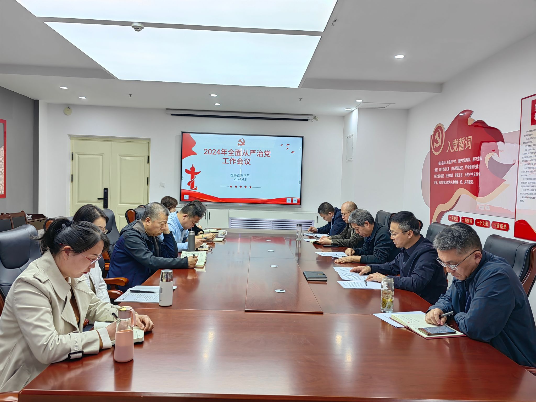 杜江山强调,全体党员师生要始终站在时代前列,亮出身份、亮出承诺、扎实工作,要激励广大党员干部主动担当,在推动日常工作上善作善成,在全力打造学院高质量发展新征程上充分发挥党员先锋作用。各党支部要持续推动基层党建工作科学化、制度化、规范化建设,不断提升党组织凝聚力和战斗力,以创新驱动激发内生动力,赋能形成推进高质量党建的“新质生产力”。