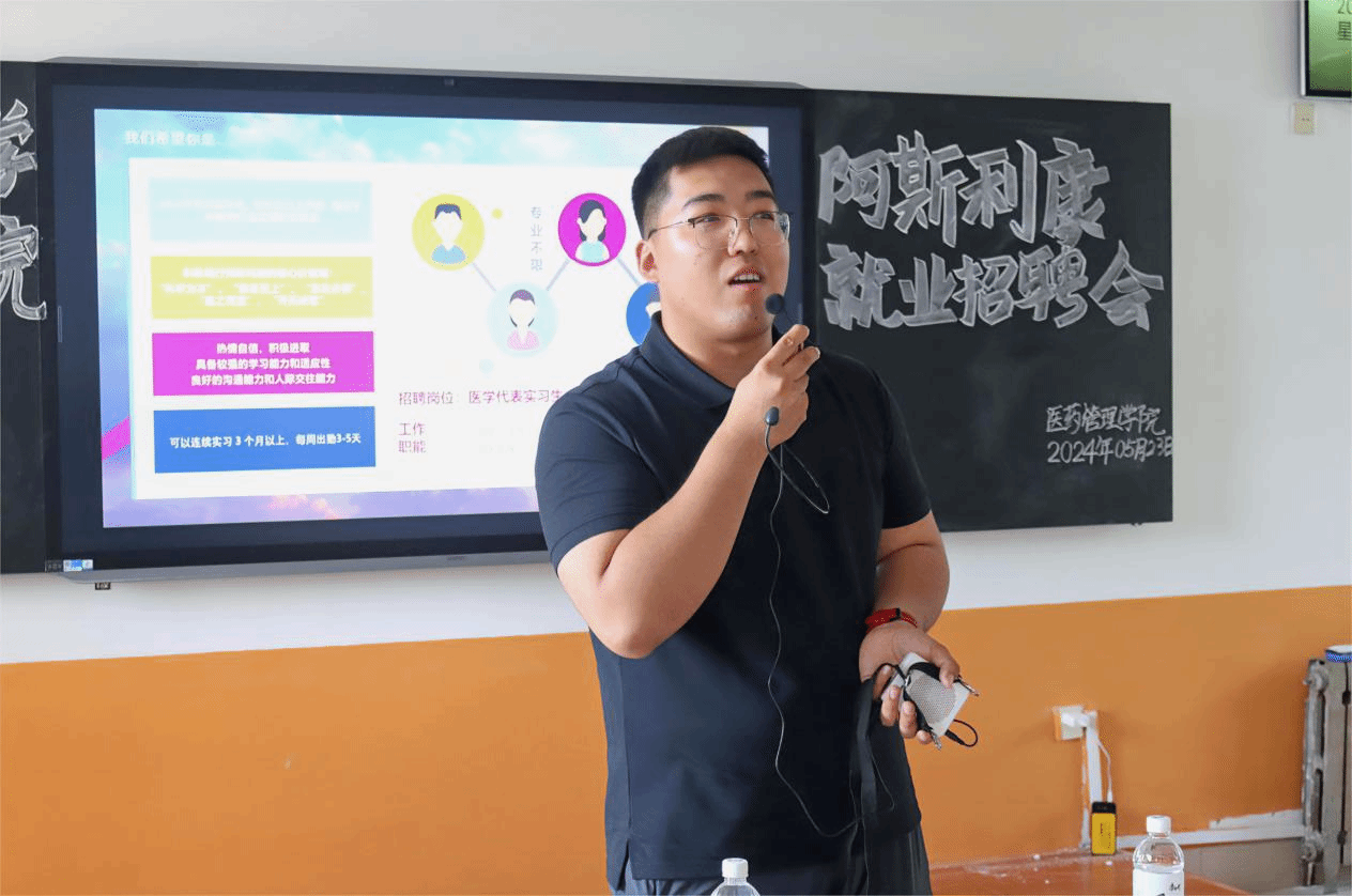 拓宽毕业生实习就业渠道,推动毕业生高质量就业,5月23日,vwin德赢ac米兰官方网邀请世界五百强药企阿斯利康在教学南楼C3007召开就业招聘会,阿斯利康校园招聘HR顾欣伟担任主讲,2024、2025届毕业生积极参与。