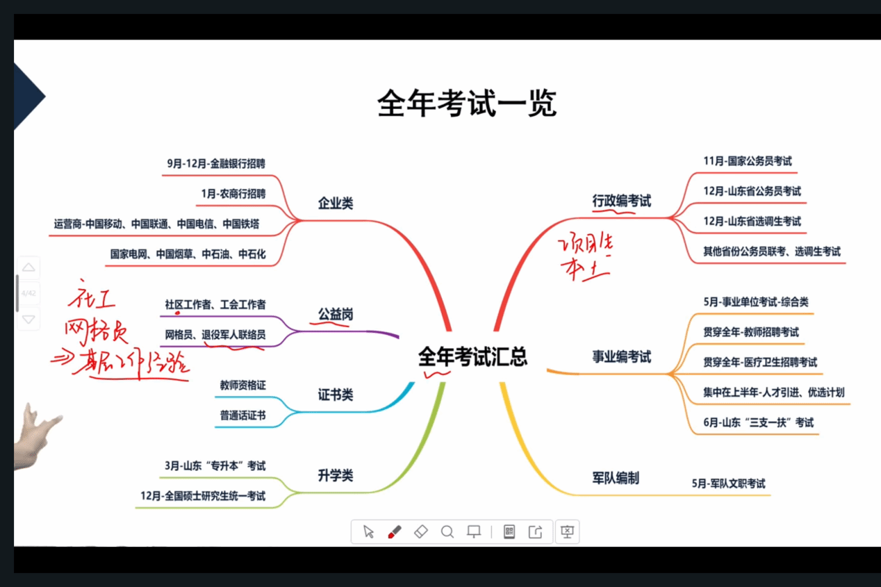 苑文琪向同学们展示了“全年考试一览图”,让同学们明晰了公职类岗位的现状以及近年趋势。她通过思维导图和数据表格等形式分别对国考、省考、选调生考试的考试时间、招聘条件、近五年招录人数、报考人数、竞争比例以及区域选择等方面进行了详细介绍。在考试备考方面,苑文琪将各类考试的内容、题型、分值占比等方面进行比较分析,为同学们的考试备考出谋划策,帮助同学们提高备考效率。同时她强调,同学们应珍惜应届生的身份,注重基层工作经验,为未来的考试招聘打下坚实的基础。