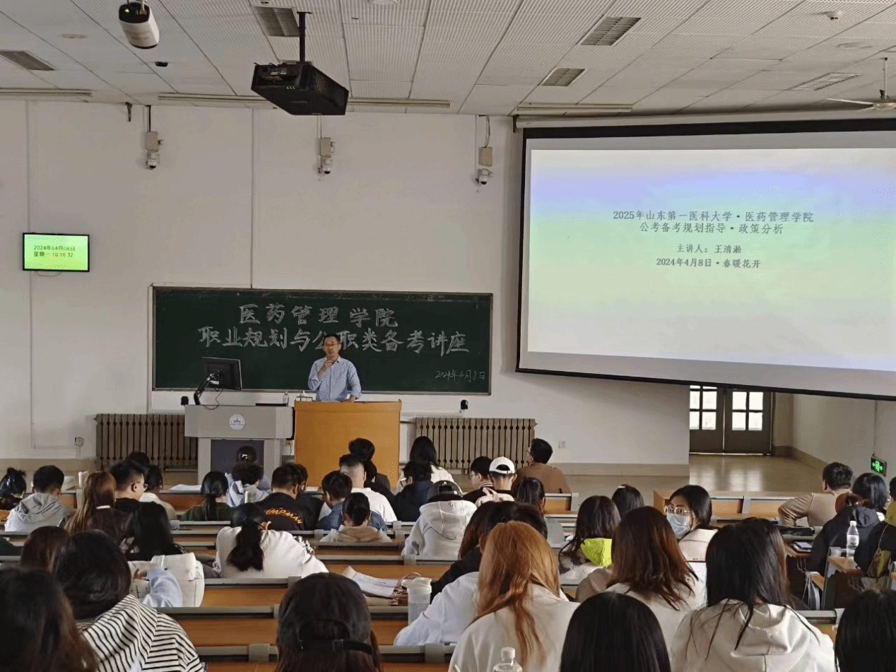 王清淞从毕业生就业指导规划、公职类考试前景、公职类考试整体备考规划及方案三个方面展开具体讲解。同时,他结合近几年的招聘公告,详细分析了公职类考试的岗位要求、笔试技巧、面试类型及报考注意事项,让同学们对公务员考试有了更为全面、深入地了解,针对当前考公的严峻局势,他鼓励同学们积极尝试投身基层服务,夯实个人职业规划的基石,积累宝贵的职业经验,为祖国的繁荣发展贡献出自己的青春力量。