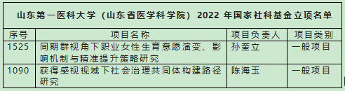 此次获得立项的国家社科项目分别是孙奎立教授主持申报的《同期群视角下职业女性生育意愿演变、影响机制与精准提升策略研究》、陈海玉副教授主持申报的《获得感视视域下社会治理共同体构建路径研究》。