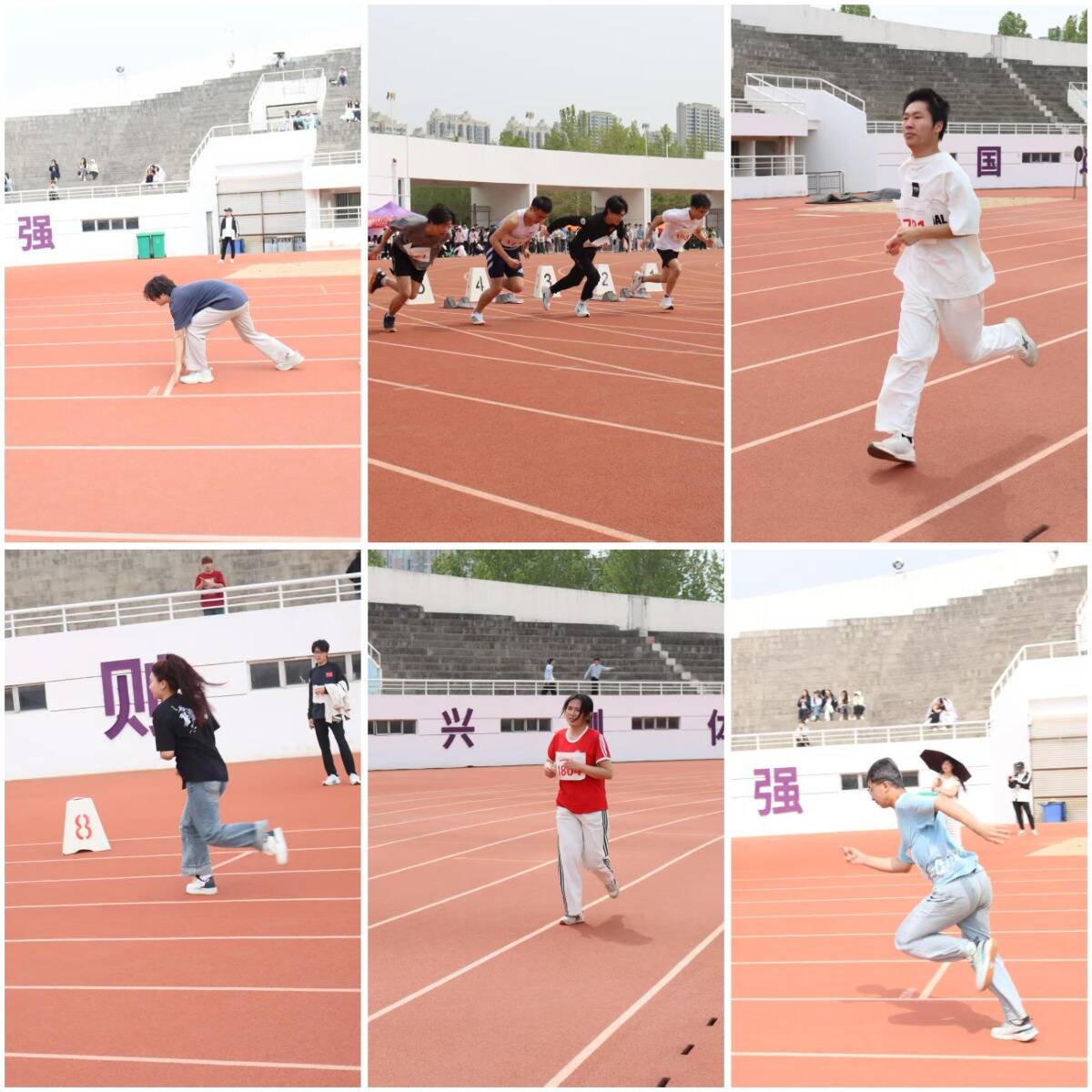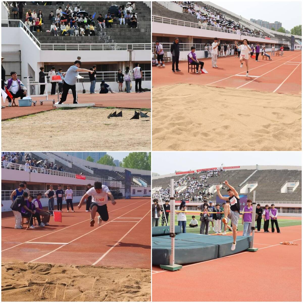 短跑赛场上,运动员以爆发力突破速度极限,用坚定的步伐诠释拼搏精神;长跑赛道中,选手凭借稳健节奏与顽强毅力,展现永不言弃的竞技品格;接力项目里,队员默契配合、交接有序,以奔腾的步伐彰显青春活力与团队担当。跳高选手奋力一跃,挑战高度极限;跳远运动员加速冲刺,以速度与力量的完美结合丈量距离;铅球选手全力投掷,尽显力量之美;三级跳运动员怀揣信念,在沙坑前迸发青春的爆发力。他们用拼搏诠释体育精神,以汗水书写青春华章。