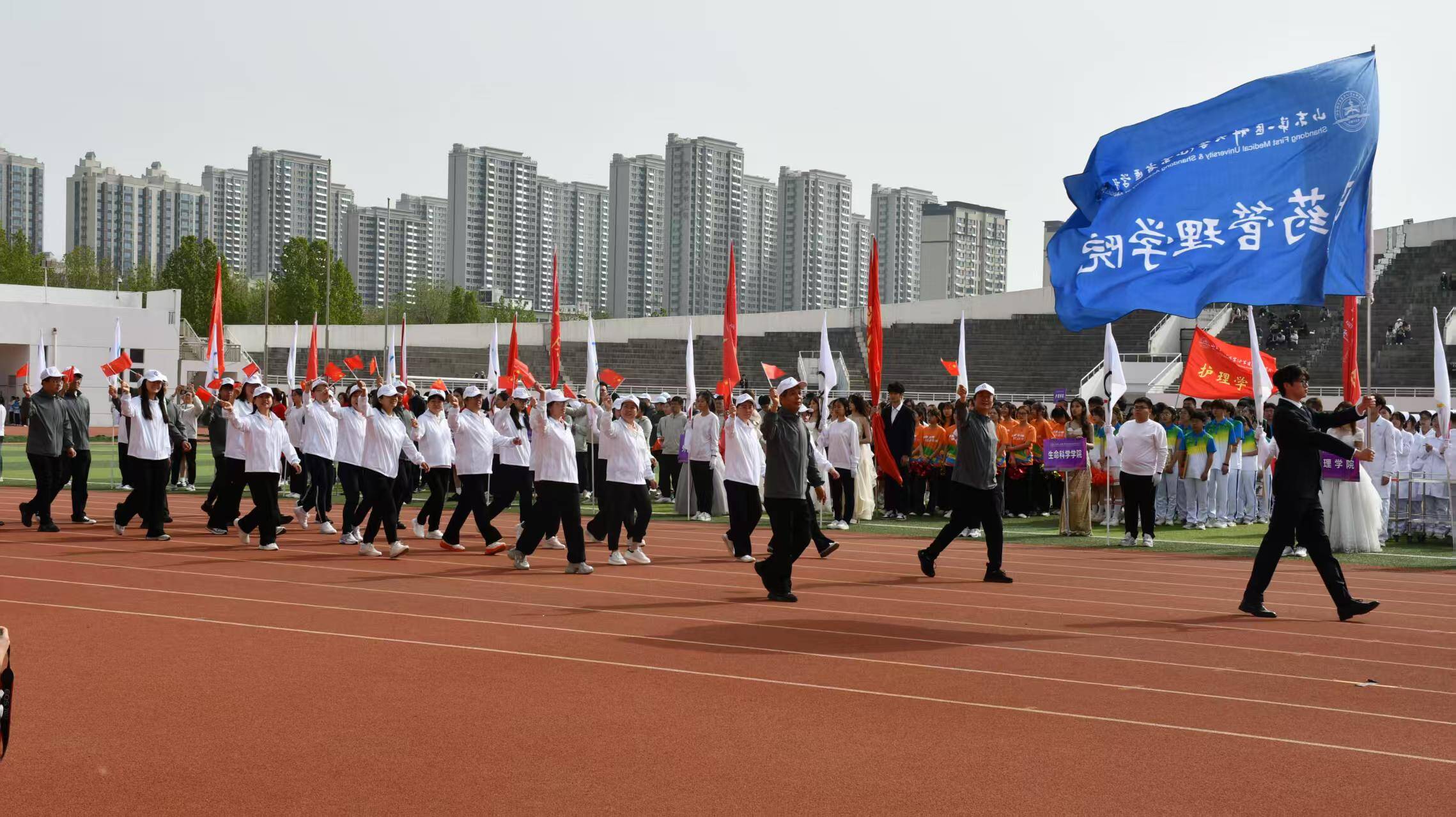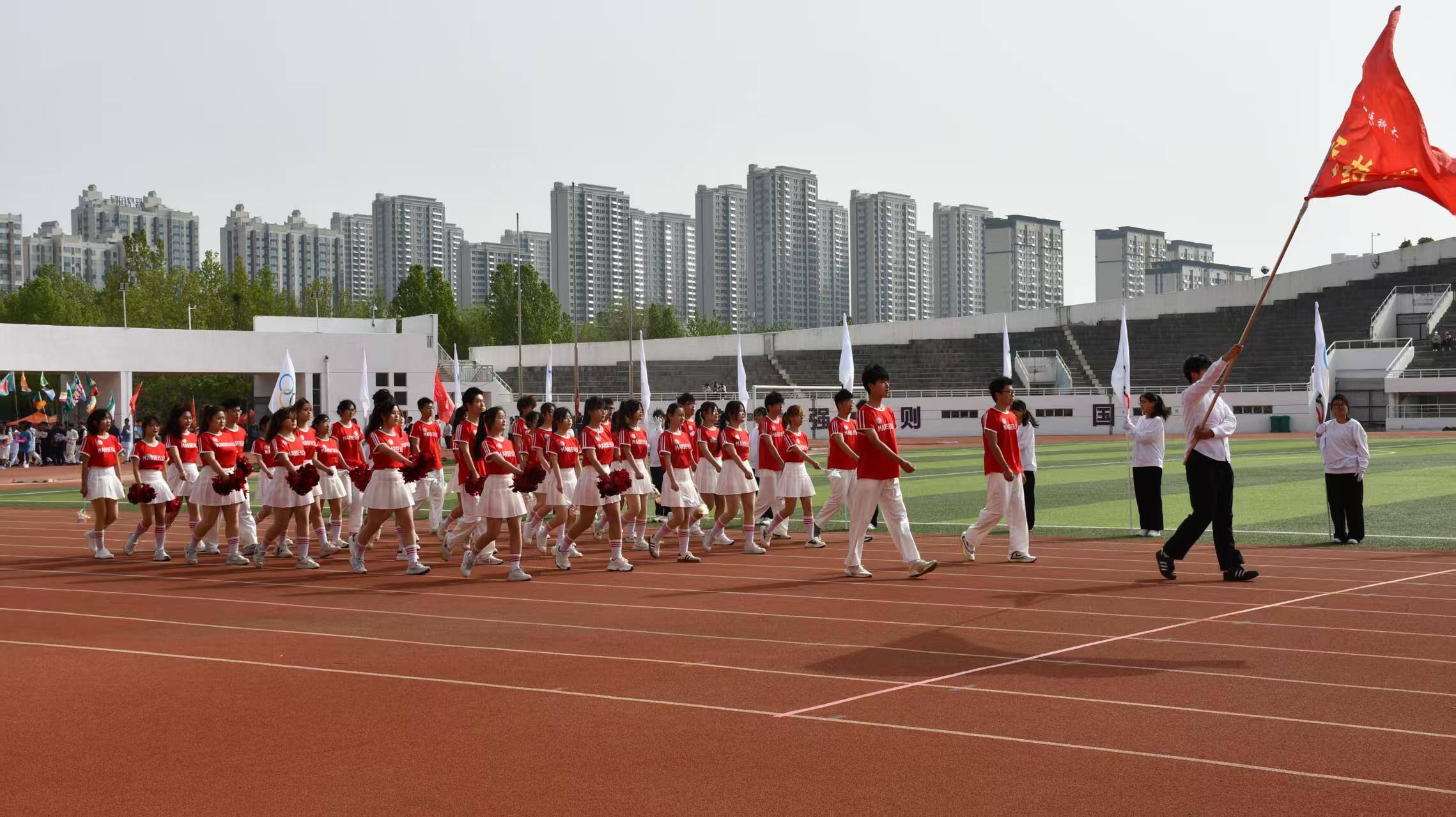 春日暖阳映照跑道,《运动员进行曲》激昂奏响。开幕式上,学生方队步伐整齐、口号嘹亮,尽显青春蓬勃朝气与竞技热忱;教职工方队紧随其后,将讲台沉稳风范转化为赛场活力,步伐间彰显教育工作者的坚定信念。我们期待,这片充满激情的赛场上,将诞生更多激励人心的拼搏故事。