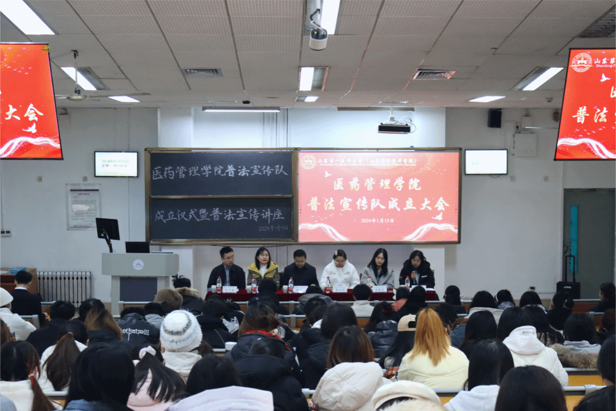 在普法宣传队成立仪式结束后,泰安市司法局的陈现来老师为本次活动进行普法宣传。他带领同学们对我国普法工作历程进行了回顾,使同学们认识到普法工作的不易,同时从生动有趣的真实案例入手,将本次讲座的气氛推向了高潮,打破了同学们对普法宣传的传统认知,使同学们意识到法律与每个人息息相关。