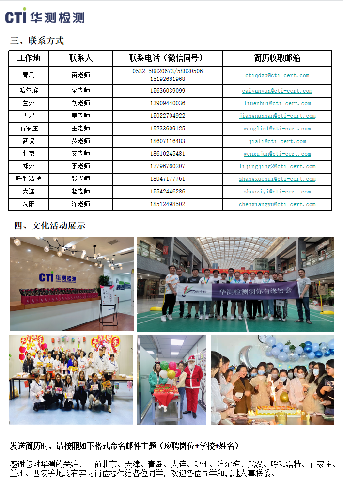 华测检测认证集团股份有限公司 2022年北方区实习生招聘简章