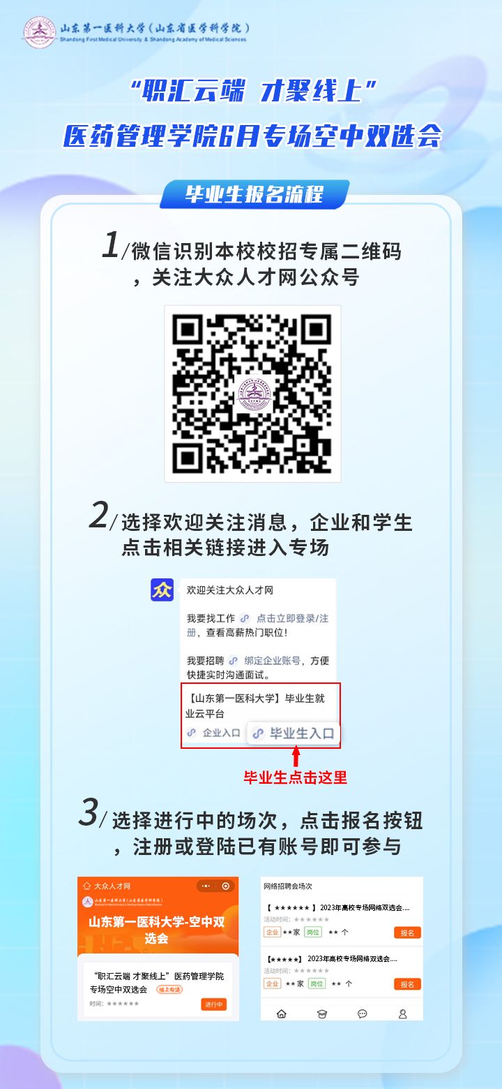 手机微信扫码关注“大众人才网”微信公众号,企业和毕业生分别点击相关按钮进入vwin德赢ac米兰官方网校招专属端口,点击本学院报名按钮,注册或登录已有账号即可直接参与。