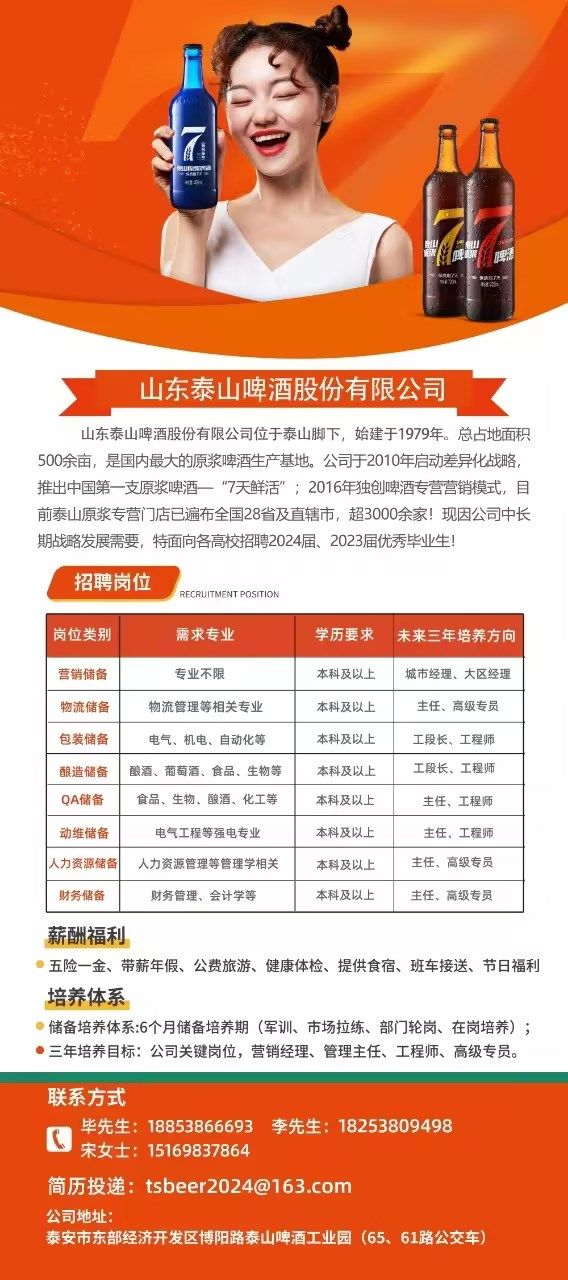 访企拓岗|山东泰山啤酒股份有限公司招聘