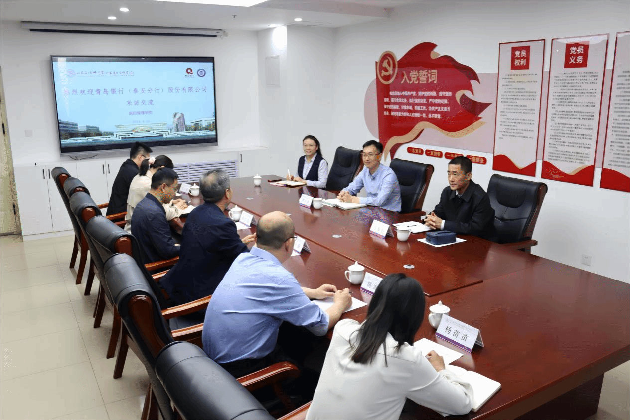 4月25日,青岛银行泰安分行行长谭长臻一行到德赢官网访问交流。学院院长陈士福、党委书记杜江山出席会议并热情接待,副院长陈海玉主持会议。