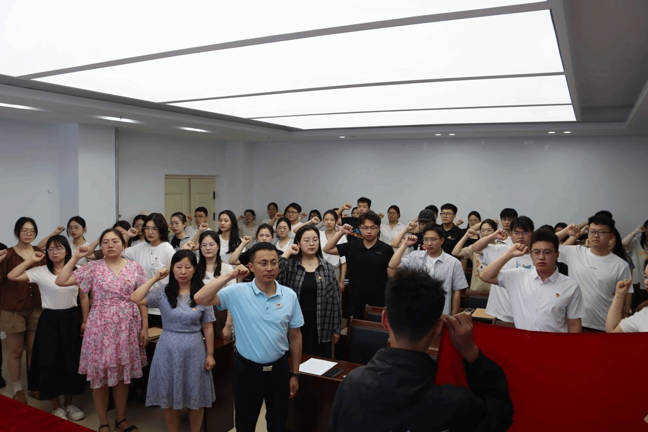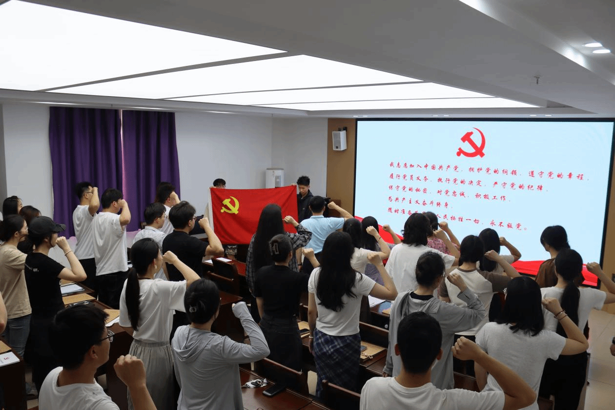 新老党员重温入党誓词,一字一句,声音洪亮、慷慨激昂,表达了为党的事业终生奋斗的坚定信念和决心。毕业生党员们纷纷表示,自己将带着这份共产主义信仰和老师同学们的美好祝福,在未来的道路上坚定理想信念,勇于担负时代责任。