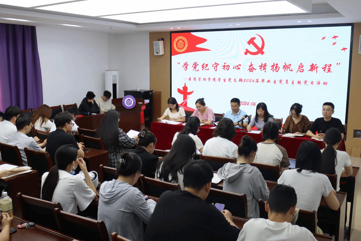 为充分发挥毕业生党员的先锋模范带头作用,进一步加强学生党员的思想教育,6月12日,vwin德赢ac米兰官方网学生党支部于大会议室举办“学党纪守初心,奋楫扬帆启新程”2024届毕业生党员主题党日活动。vwin德赢ac米兰官方网党委书记杜江山、组织员周晓芳、学工办主任董灵芝、全体学生党支部书记、2024届毕业生党员代表以及2024年新发展党员代表出席活动。活动由组织员周晓芳主持。