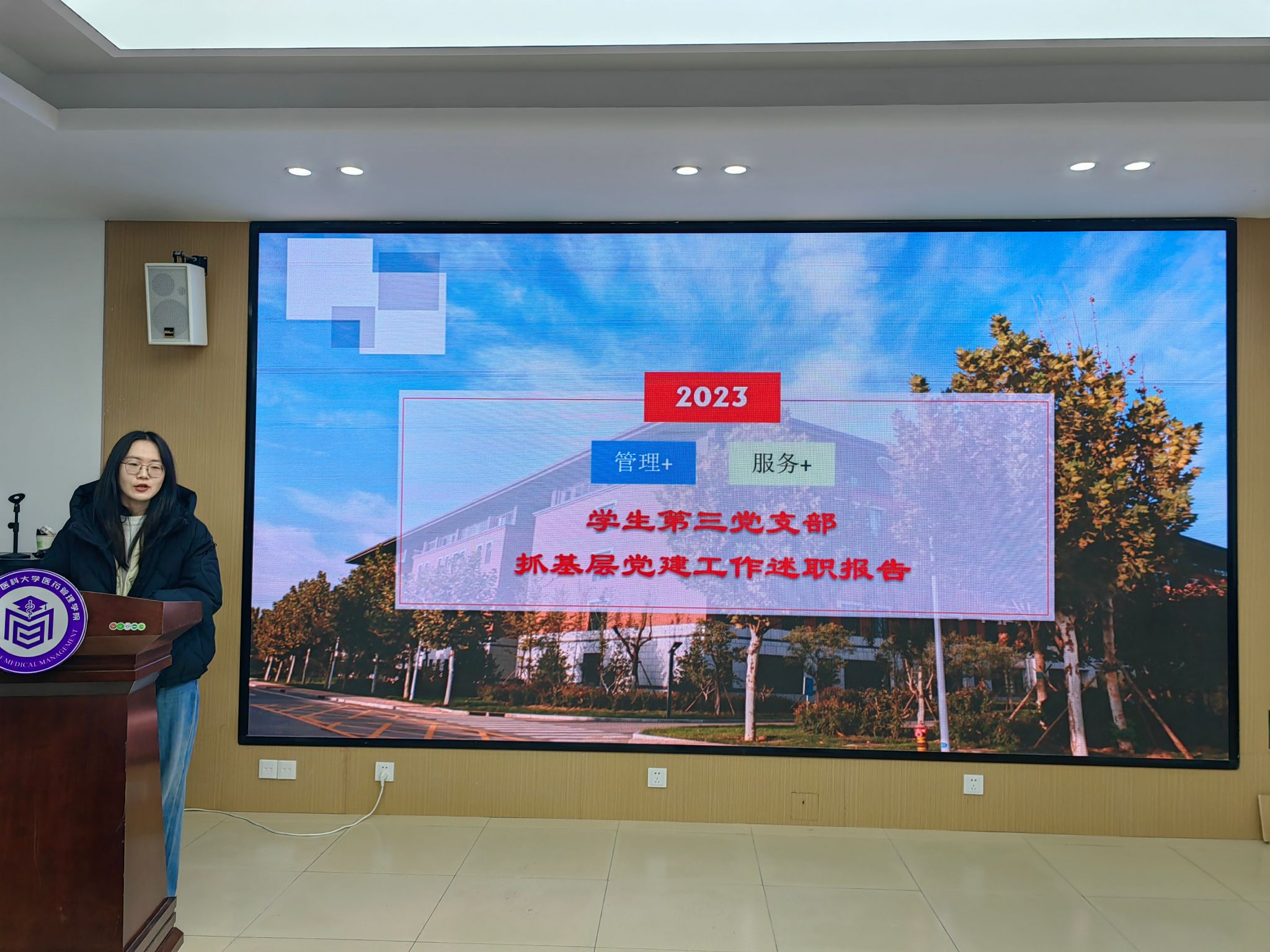 会上,学院4名教工党支部书记和3名学生党支部书记依次从履职情况、存在的主要问题和原因分析,以及下一步的改进举措三个方面进行了述职。杜江山对各党支部书记逐一进行点评,既肯定了党支部在履行全面从严治党主体责任、抓实基层党建工作等方面的工作成绩,也点出了党支部目前存在的薄弱环节,并对下一步改进提升提出了具体工作建议。