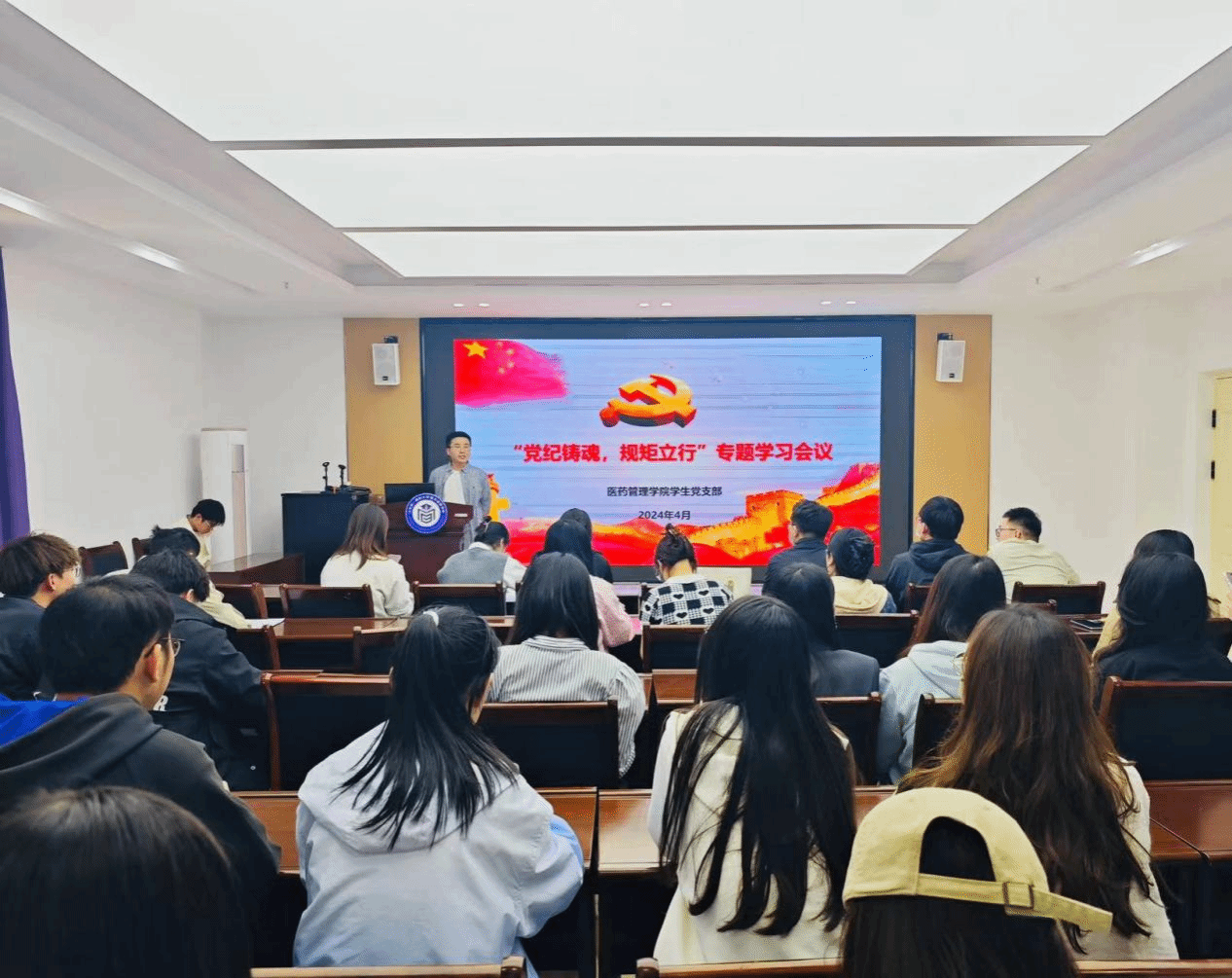 学生第二党支部书记张少儒带领大家学习了开展党纪学习教育的重要意义,作为学生党员要自觉维护党的形象,要学纪、知纪、明纪、守纪,用纪律作为自身行为的标准和遵循。