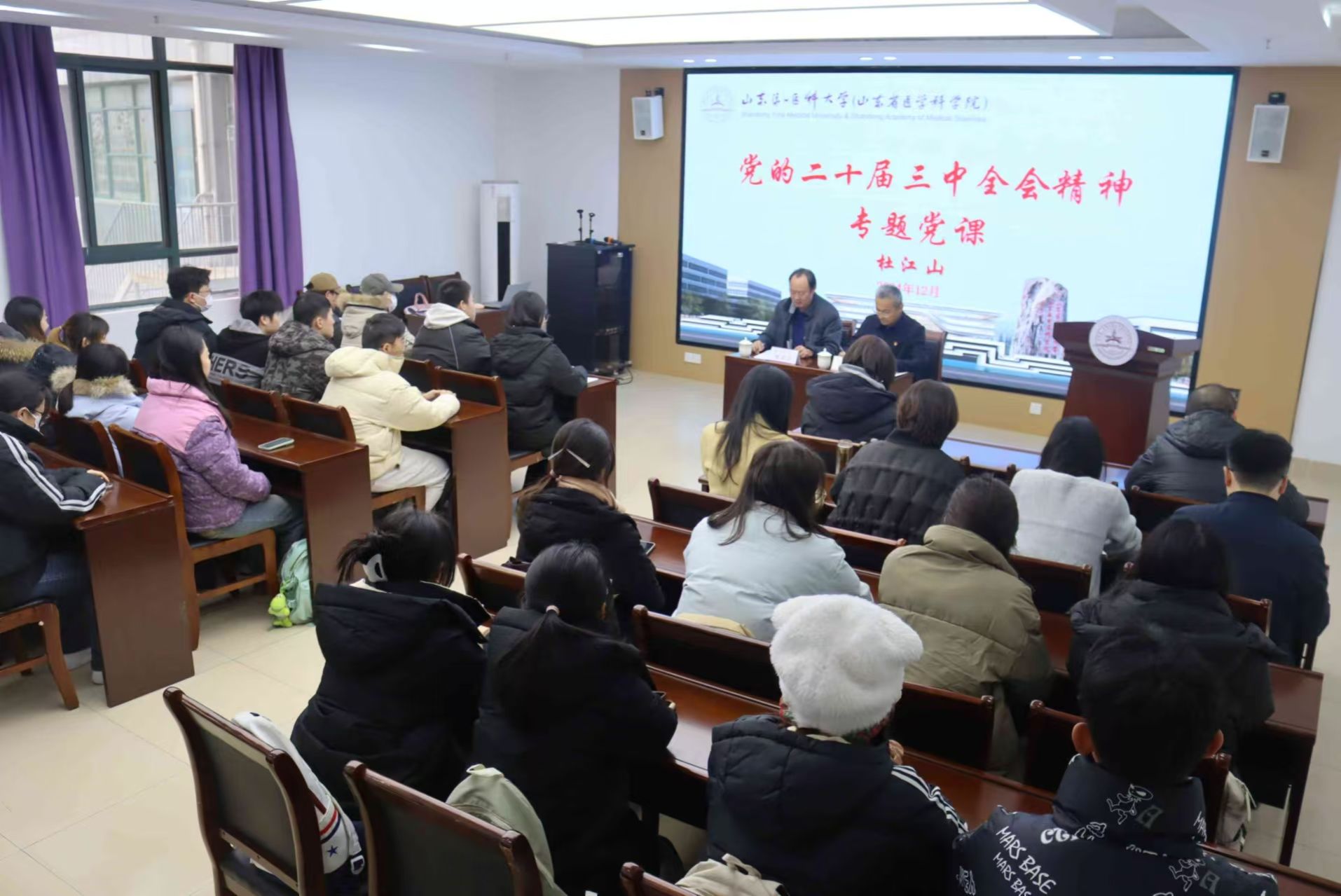 为深入学习贯彻党的二十届三中全会精神,引导全院师生将思想和行动统一到党中央的决策部署上来,12月12日上午,vwin德赢ac米兰官方网举办党的二十届三中全会精神专题党课,此次专题党课由学院党委书记杜江山讲授,学院党委副书记赵启会主持,学院科级干部及辅导员和部分学生党员代表参加学习。