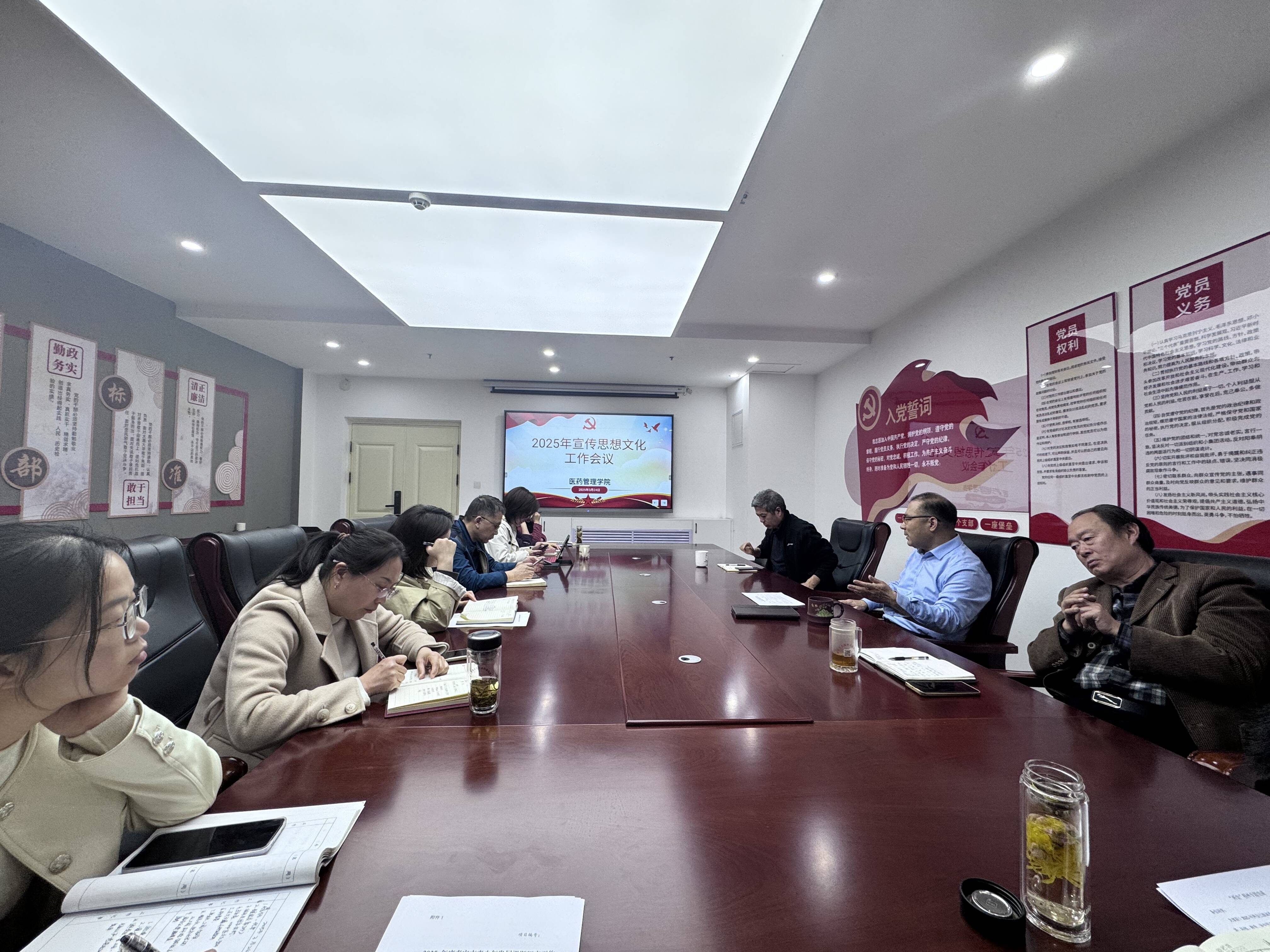 苏宝利传达了校(院)2025年宣传文化工作会议精神及相关文件,全面总结了学院2024年宣传文化工作,通报了近期学生思想动态情况,分析研判了目前意识形态工作的热点问题,对学院近期意识形态工作开展情况及下一步工作做了具体安排。