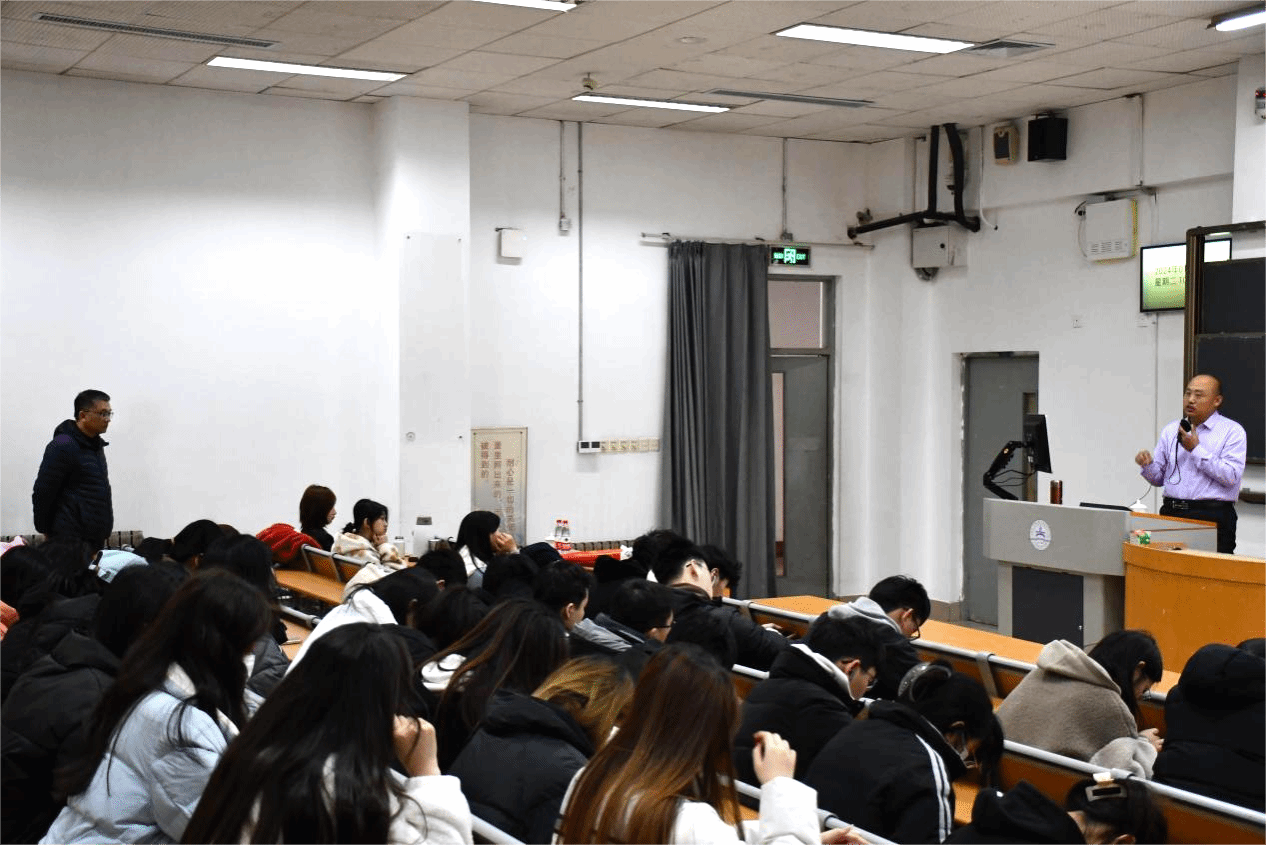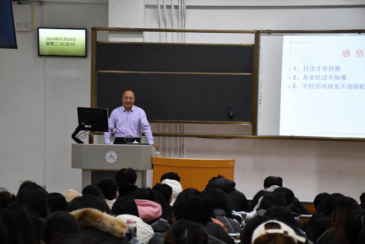刘克从走访调研、改建服务设施、带动经济发展、义诊捐物等方面对乡村振兴进行了专题解读,分享了自己的志愿服务经历和对助力乡村振兴的感悟。他表示,大学生是乡村振兴的主力军,同学们要努力学习专业知识,提高自身素质,积极参与志愿服务与社会活动,深入基层,知行合一,躬行实践,书写与时代同行的青春篇章。随后,于忠军、周晓芳与刘克进行问答交流,刘克向同学们展示了在服务基层过程中获赠的锦旗,引起同学们的讨论兴趣,现场氛围热烈融洽,同学们在交谈中对投身基层、服务社会有了更深刻的认知,个人为成长成才树立了正确的世界观和价值观。