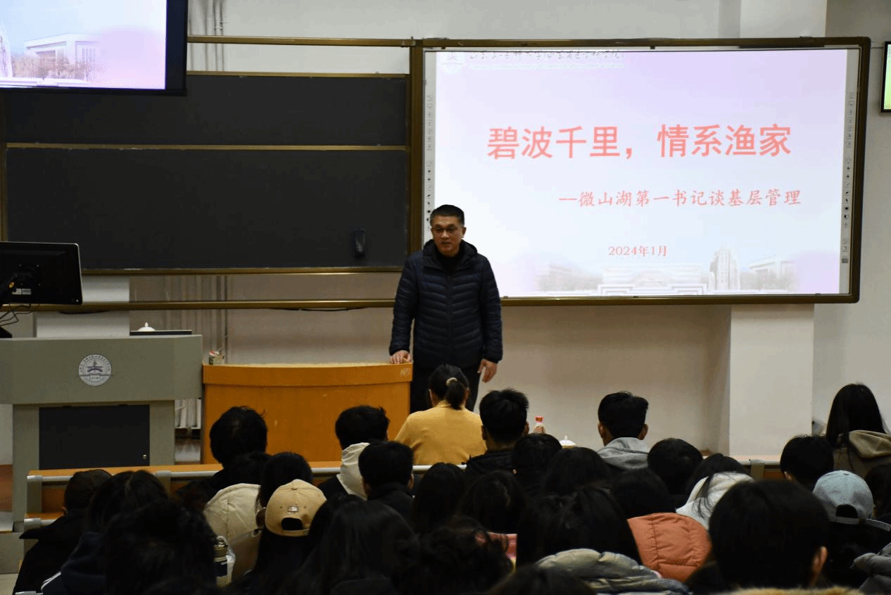 为充分发挥乡村振兴青年先锋的示范带头作用,引导更多青年投身乡村振兴实践,推动乡村振兴工作,1月9日,vwin德赢ac米兰官方网在教学楼南C3010举办“碧波千里,情系渔家——微山湖第一书记谈基层管理”宣讲会,刘克教授担任主讲。人力资源管理系主任于忠军、学院组织员周晓芳以及学生代表参加宣讲会。