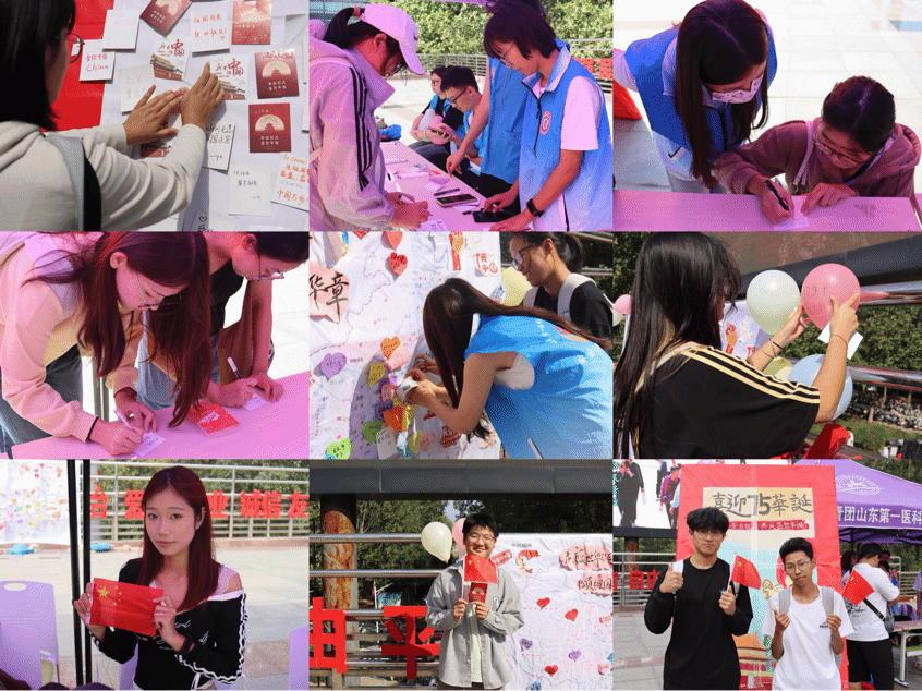 在中华人民共和国成立75周年之际,山一大vwin德赢ac米兰官方网在教学楼举办系列活动,告白祖国,为祖国庆生,抒发山一大学子的爱国热情,增强当代青年的民族认同感和凝聚力,展现新时代大学生的历史责任感与使命感。