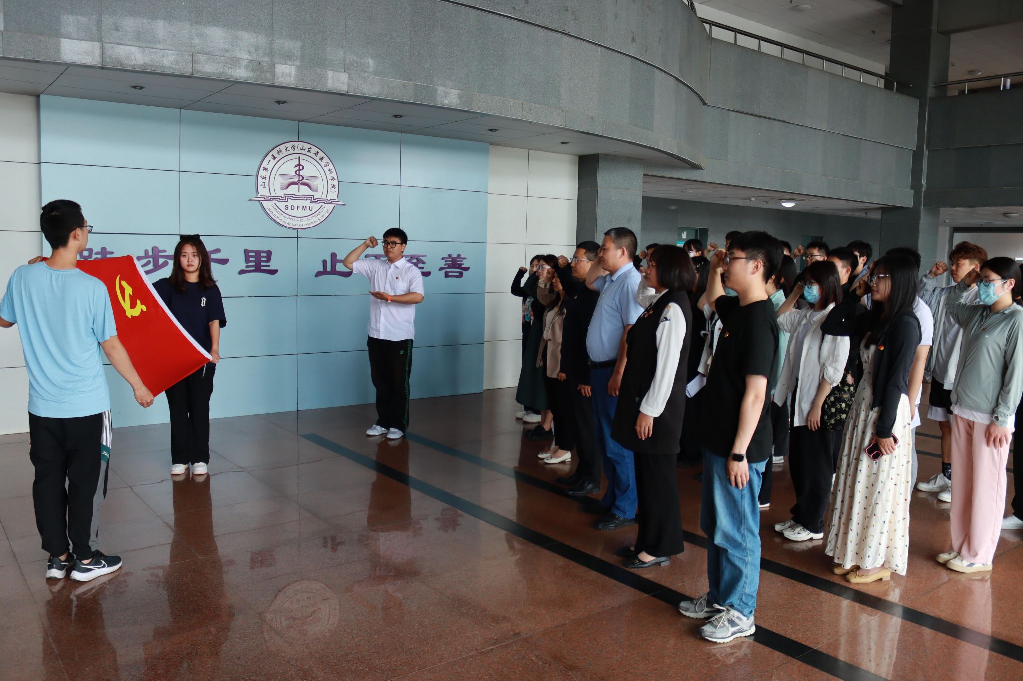 随后在南楼A座大厅,全体党员高举右手,面向党旗庄严宣誓,重温入党誓词,再次表达了为共产主义事业奋斗终身的理想和决心。